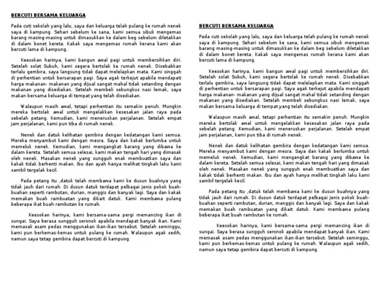 60 contoh karangan 10 ayat catatan 5. Bercuti bersama keluarga pada cuti sekolah yang lalu, saya dan keluarga telah pulang ke rumah. You have just read the article entitled contoh karangan bercuti bersama keluarga spm.